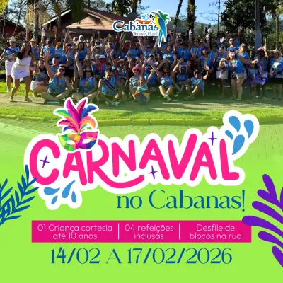 Aproveite um Carnaval inesquecível no Cabanas! O pacote conta com Desfile de blocos de rua, Marchinha na piscina, Chopp, piscinas termais e muito mais para toda a família.